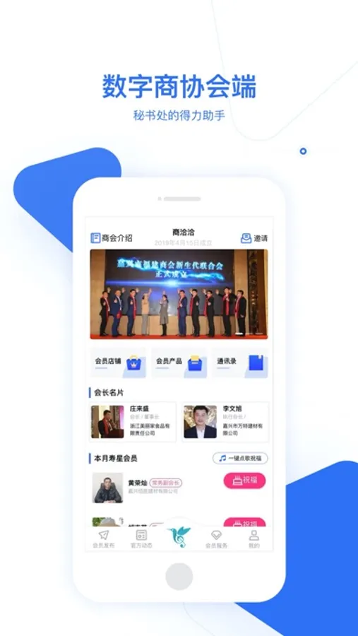 商洽洽商会码/商恰恰商会码是一个为商会和协会提供云商智慧服务的平台,是嘉兴市工商联指定的官方数字化服务平台。商洽洽商会码是一个为商协会提供SaaS服务的平台,是嘉兴市工商联指定的官方数字化服务平台。商会码商协会端包含:会费收缴管理,官方信息一键发布,云通讯录管理,活动会议,视频现场直播等功能。