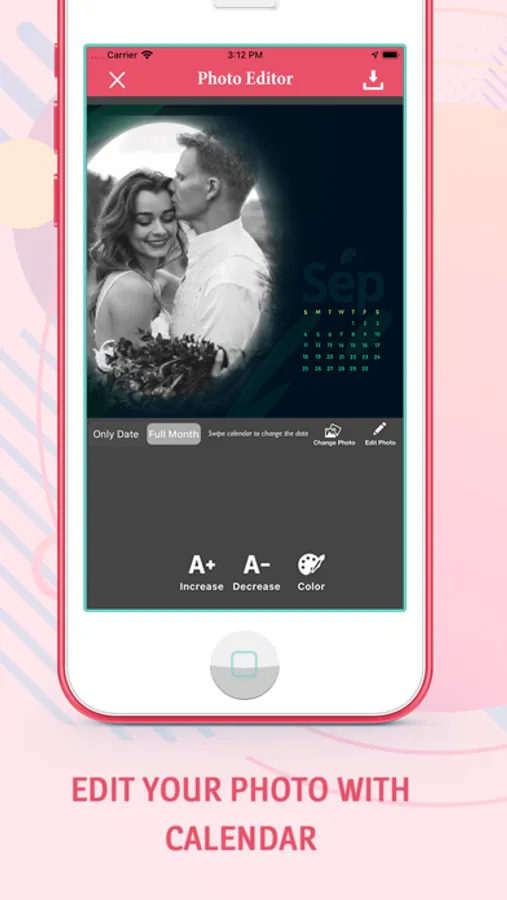 You can set full calendar on frame OR set only date on frame, select and edit a photo.