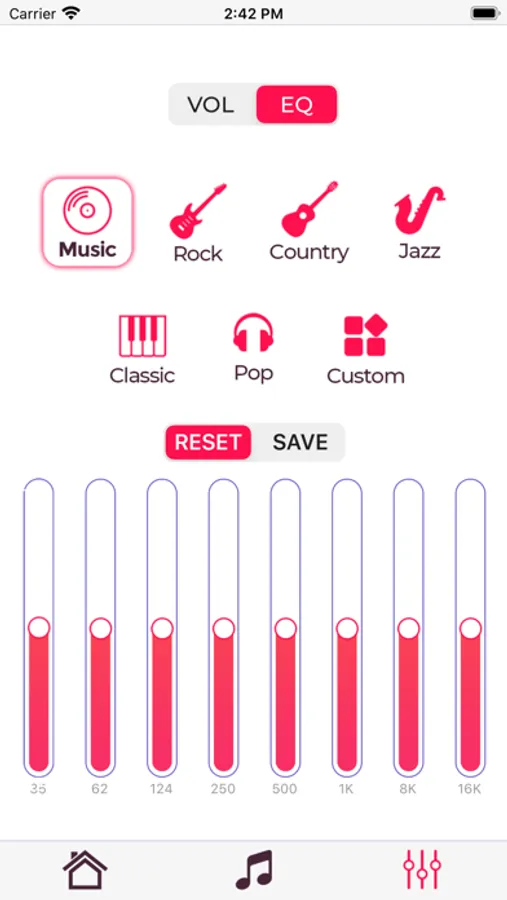 3. Sound effect: you can adjust the sound volume, treble and bass. You can also select the corresponding default mode, such as jazz, country, rock, etc., and you can customize your favorite mode.