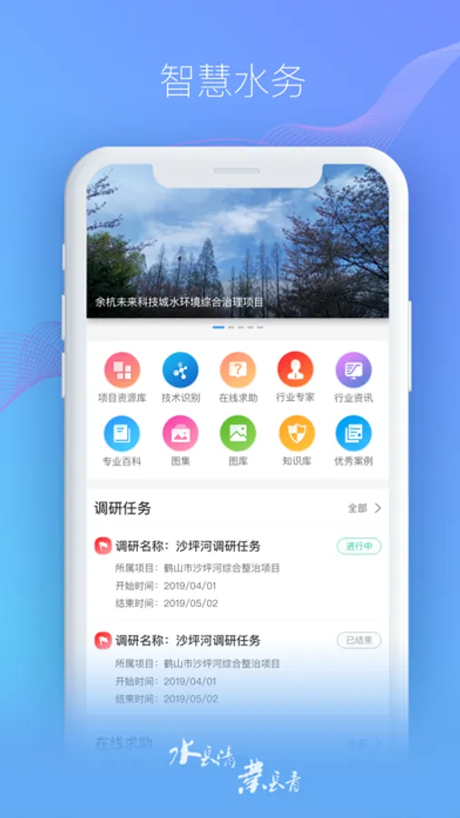 水环境知识决策系统APP由北控水务(中国)投资有限公司开发,实现水环境综合治理工程设计、建设、运营过程中技术大数据综合管理,具有六大知识库体系,包括项目库、技术库、问题库、专家库、舆情库、百科库等,为水环境专业化技术服务提供系统支撑工具。