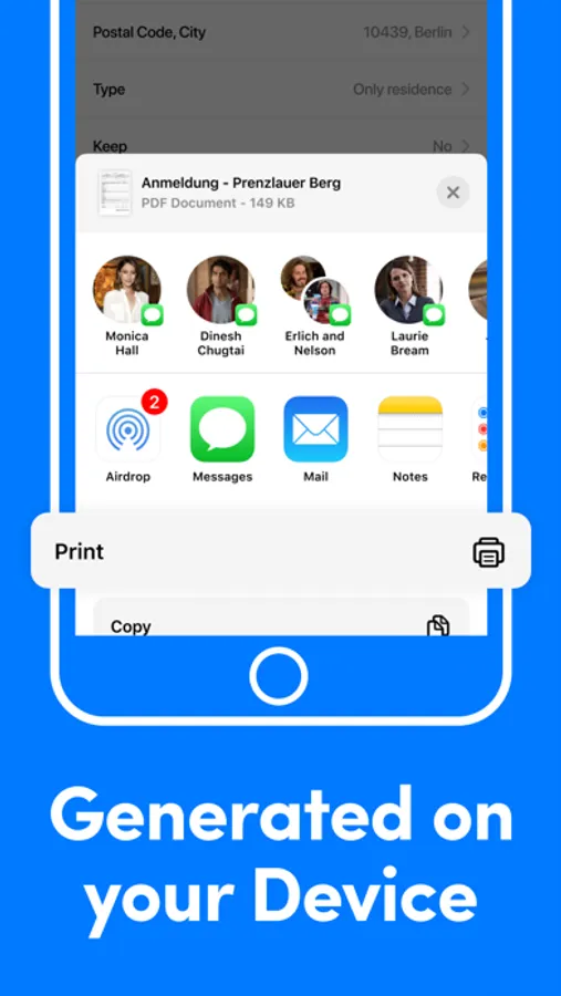 After filling out the form, a PDF will be generated right on your device, ready for you to share and print. This is the fastest way to become a Berliner.