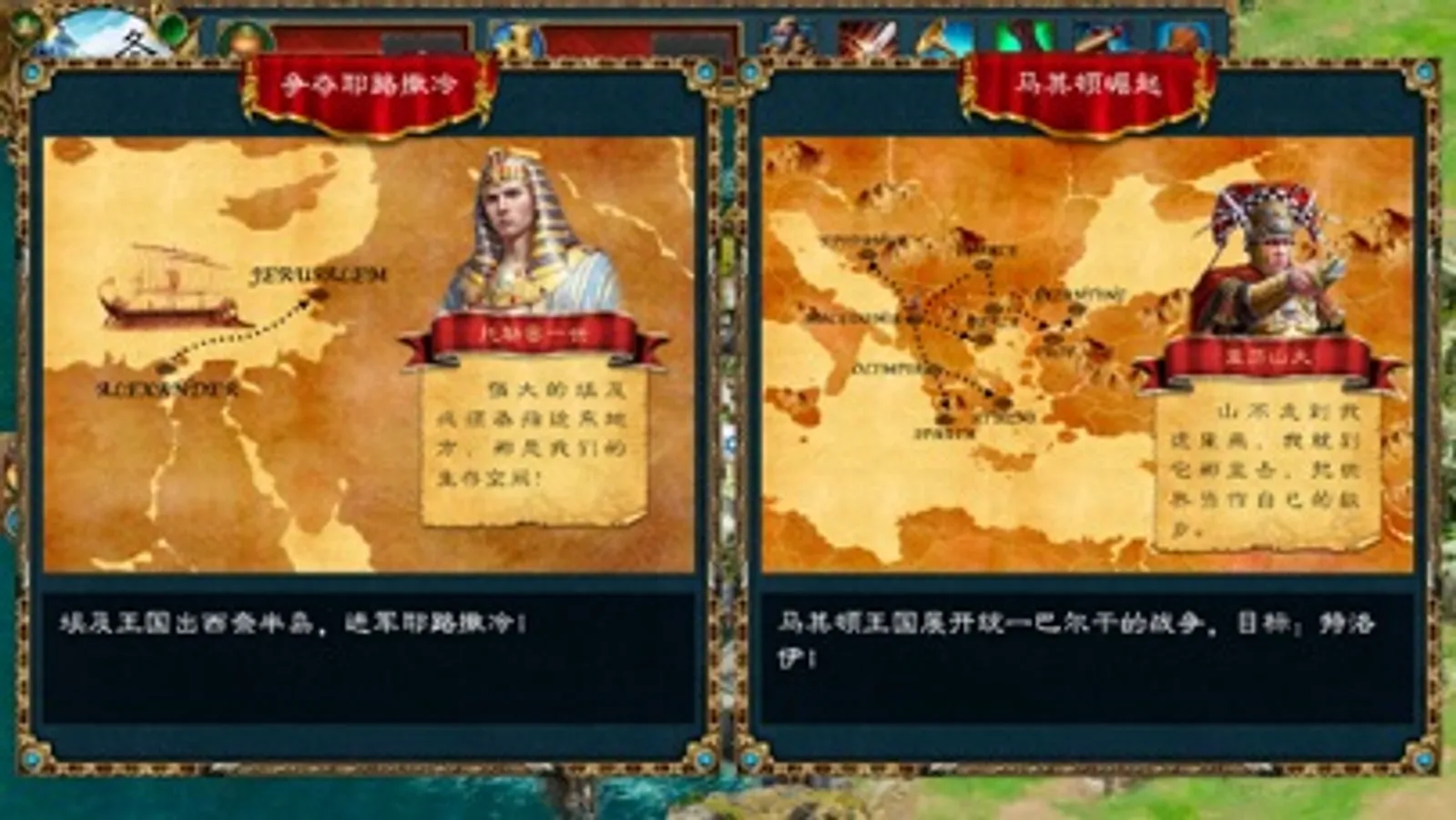 我们突破时间限制,让法老王、大卫王、亚历山大帝、凯撒、汉尼拔、大流士带领自己的国家同场竞技,纵横地中海。