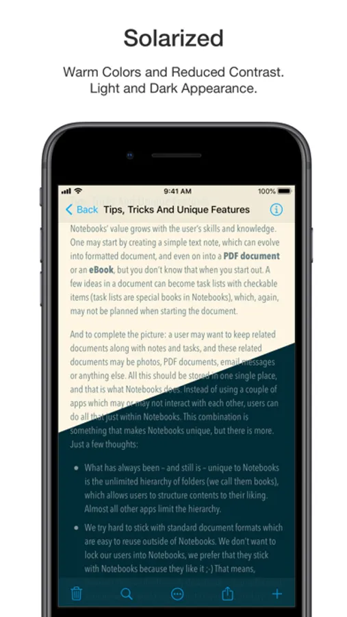 “Notebooks is a wonderful App, which is so much better than the dozen other note apps I tried. It is sophisticated, in an unassuming way, so that you find yourself greatly rewarded and being productive without sacrificing time/effort to the App. I cannot tell you how much productivity I have gained. I am having a huge amount of fun, I use it constantly, more than the phone on my iPhone in fact."