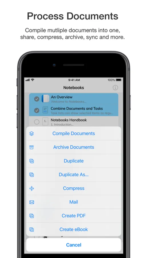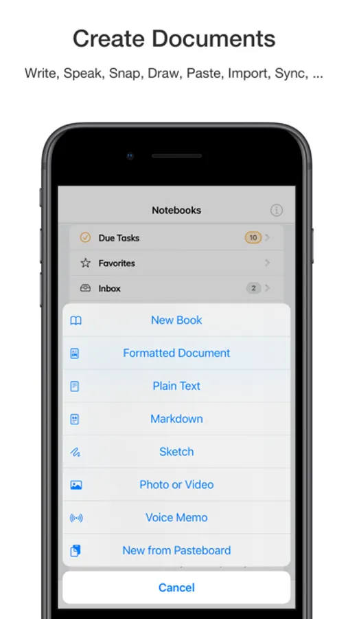 • Use Notebooks' advanced editing capabilities to work on documents which are stored in other apps.