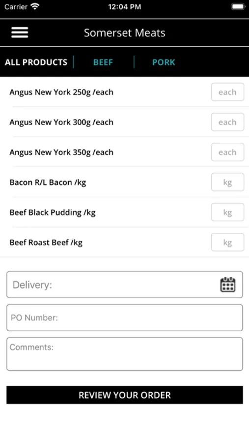 Somerset Meats Wholesalers Application is a Phone App ordering system set to revolutionize the way in which our customers order their produce. No more text messages, emails or phones calls to place your orders.