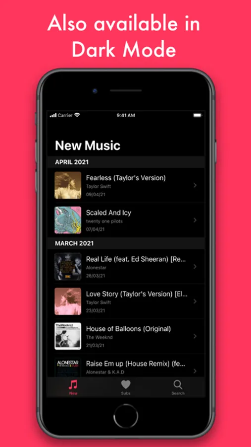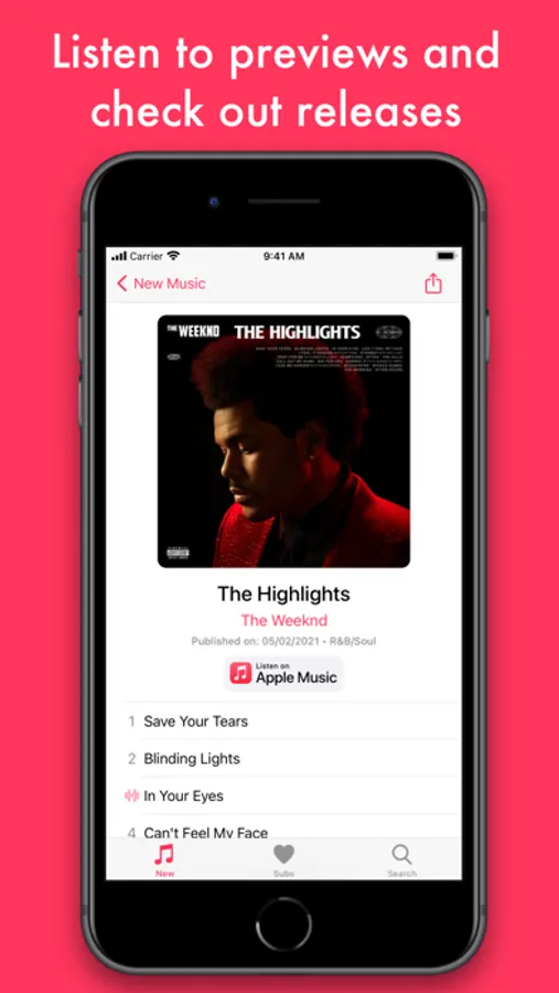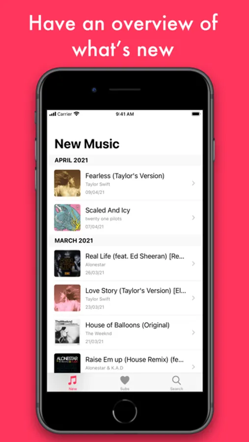 Have a clear overview of all the new music from artists you like and easily browse new songs.