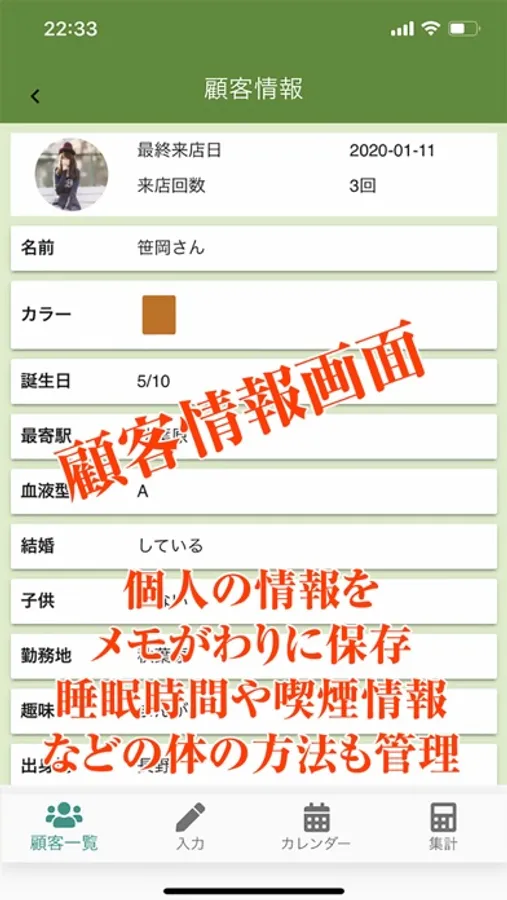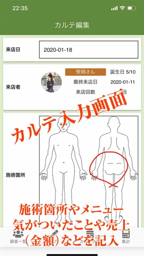 セラピストのための顧客管理とカルテが一緒になったアプリです。