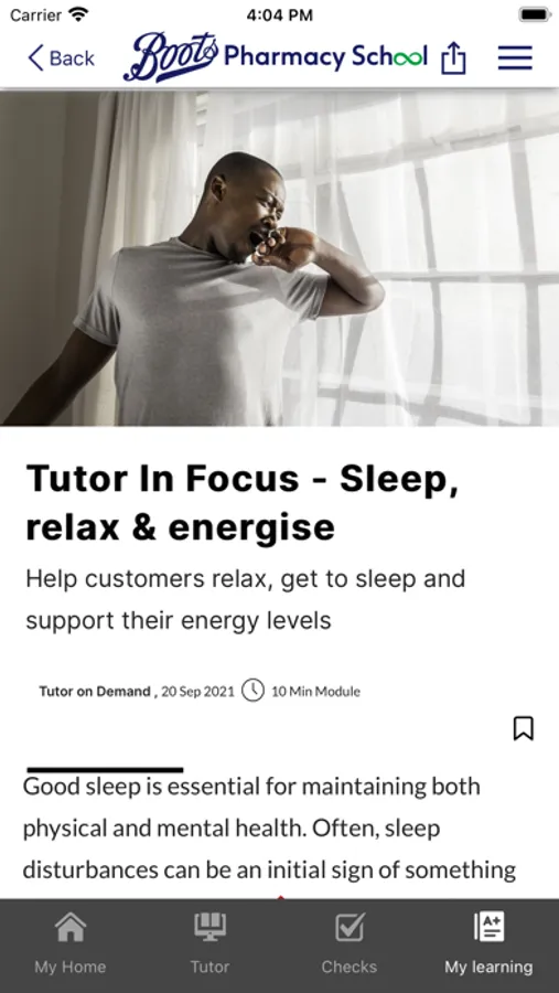 Boots Pharmacy School provides a range of high quality educational content to support the ongoing learning of pharmacy teams. You can access our extensive learning library covering business management, clinical, practice and OTC therapeutic topics to ensure you’re up to date and develop your skills and knowledge to positively influence patient outcomes and customer experiences. With content suitable for all abilities, you will be able to learn in a way that suits you.