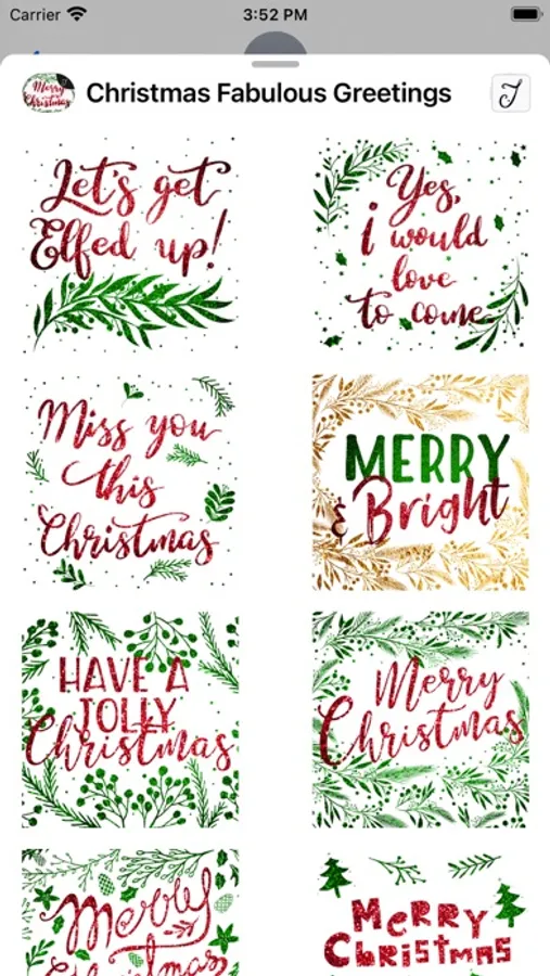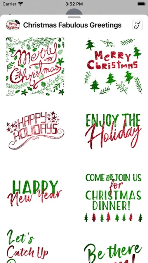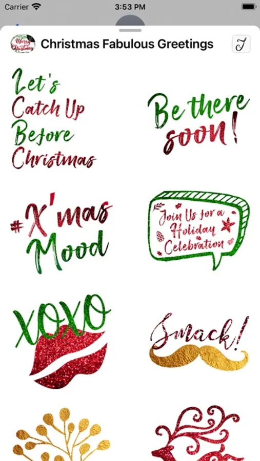 This iMessage Stickers pack comes with beautifully designed Christmas greetings Stickers, with red and green glitter pattern color scheme, who won’t be in the Christmas season mood. This sticker pack not only comes with the commonly used Holiday greetings, but it also comes with stickers that you can use to invite your friends and family to catch up, the invitation for gathering & dinner, new year's greeting, sending your loved one a special Christmas Kiss.