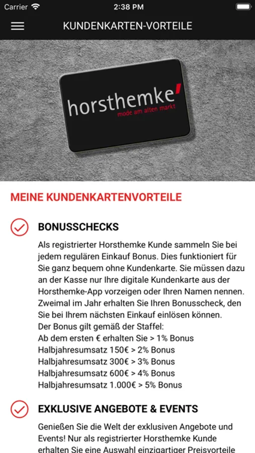 Mit der Horsthemke-App vom Modehaus Horsthemke aus Harsewinkel, haben Sie alle Vorteile von Horsthemke auf Ihrem Smartphone immer dabei – und einige Mehrwerte zusätzlich.