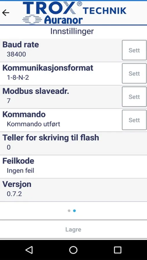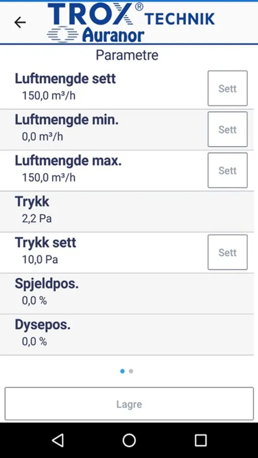 Innregulerings-og serviceapp for TROX Auranor Svalbard Comfort