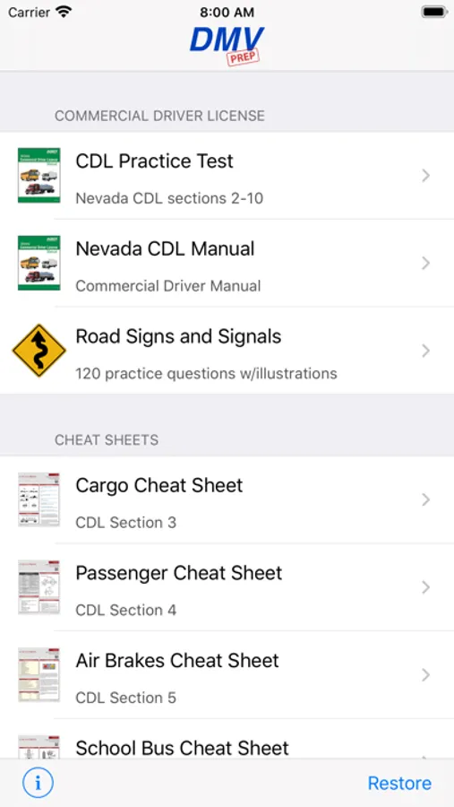 DMV Prep™ is the most comprehensive test prep platform available. Since 2009 we've helped more than 800,000 students pass the Nevada Commercial Driver License (CDL) written exam and others.