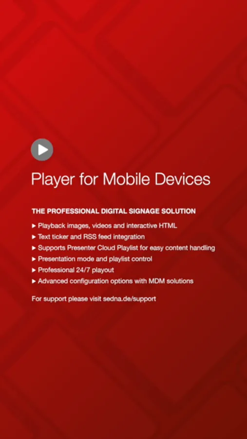 IMPORTANT NOTE: Player for Mobile Devices v2020 can only be used in full extent together with the ~sedna presenter software suite.