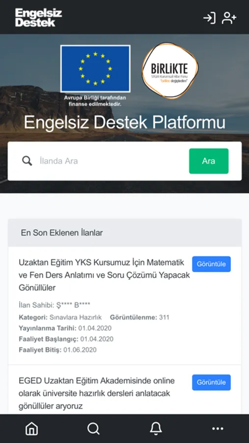 Ülkemizde her geçen gün artan bir gönüllülük bilincinin olduğunun farkındayız. Gönüllü olarak bir faaliyette bulunurken, yaptığımız işin sonucunda nelerin değişeceğini görmek isteriz. İşte bu platformda, gönüllü olarak bir konuda desteğe ihtiyaç duyan görme engelli kişilerle doğrudan temas kurabilecek; ilgi, beceri ve yetenekleriniz doğrultusunda açılan ilanlara destek olabileceksiniz.