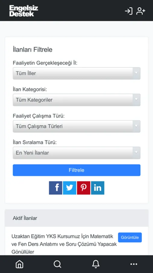 -Görme engelliler, ihtiyaç duydukları talebe ilişkin ilan oluşturabilecek,
