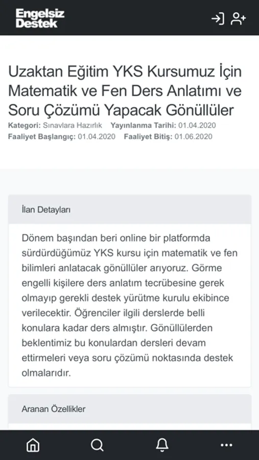 -İlanı oluştururken yaşadığı ili, ihtiyaç duyduğu konuya dair destek vermek isteyen gönüllüde bulunması gereken özellikleri, faaliyetin hangi zaman aralıklarında gerçekleşeceğini ve diğer ayrıntıları belirtebilecek,