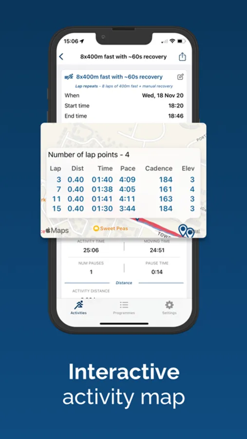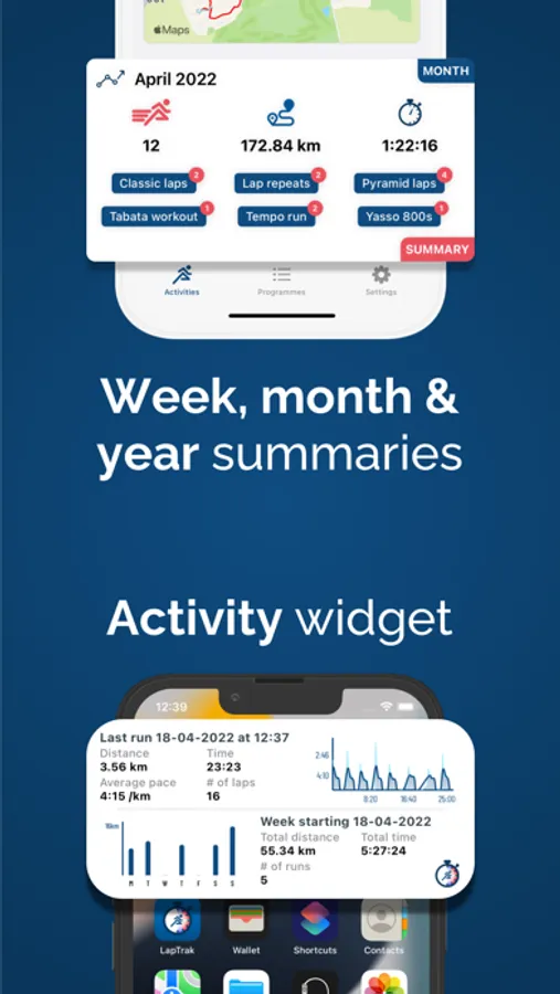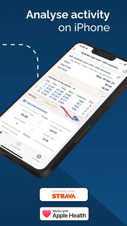 LapTrak is a running activity tracker with specific features & programmes for speed/interval/lap training.