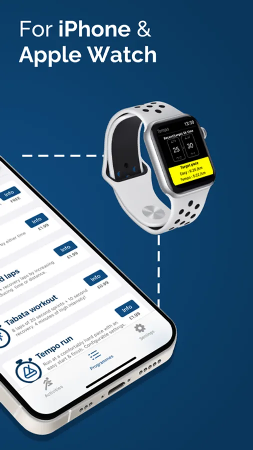 If you need more specific interval-style workouts, you can upgrade to other programmes via your iPhone. These will then be available directly on your watch, with custimsable settings to guide and motivate your through your workout. Available programmes are: