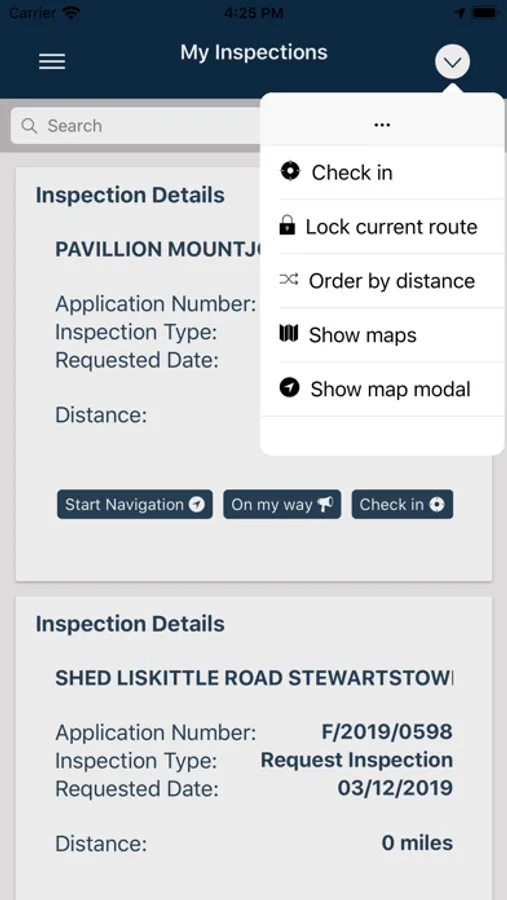 You can check in and out of inspections, manually check in to a specific location on the map and inform the site contact that you are on the way to their inspection via text message.