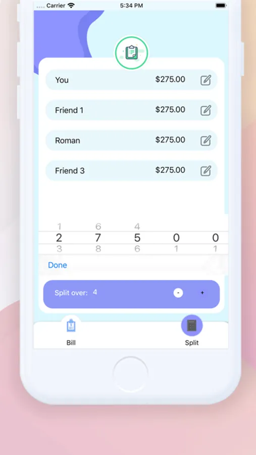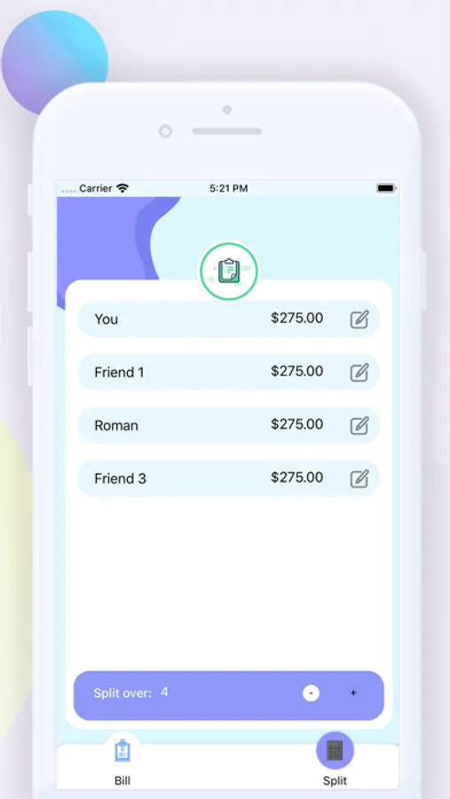 An OFFLINE Bill Splitter is an idea behind to split bill among friends without forcing your friends to download app, signup in it and then split bill with them. It is very easy and simple to use. Simply add total amount, TIP amount or percentage and select number of friends. You can also adjust amount for any friend if there are no same part of split.