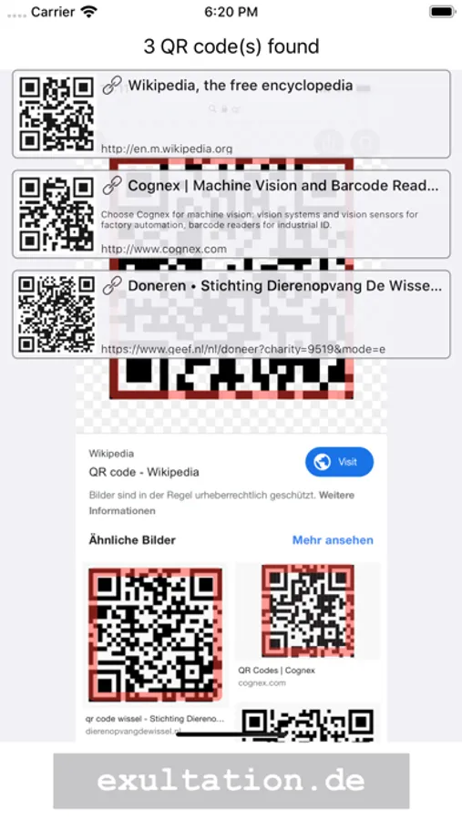 With this app you can scan and evaluate QR codes from the images in your Photolibrary even when there are more than one QR Code in you image. Simply select an image from your photo library and send it to the QR scanner (pro) using the "share" function