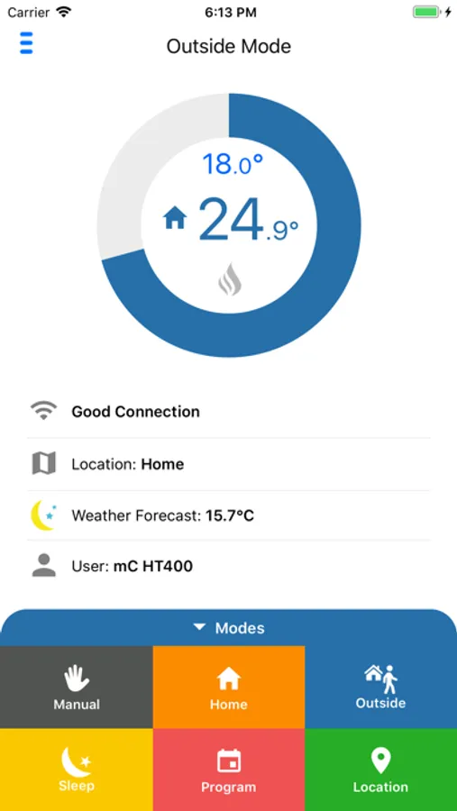 - You can choose one of the 6 different modes which suit your situation and control your home temperature. (Home Mode-Sleep Mode-Outside Mode-Program Mode-Location Mode-Manual Mode)