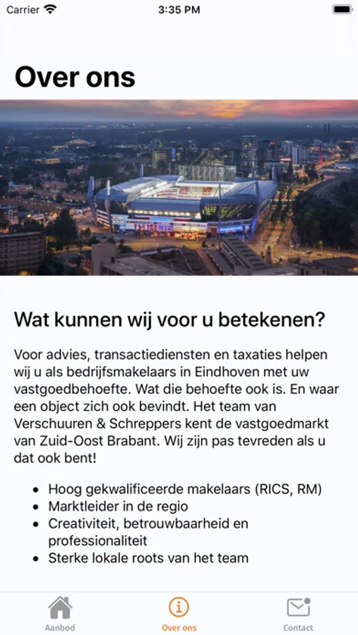 Voor advies, transactiediensten en taxaties helpen wij u als bedrijfsmakelaars in Eindhoven met uw vastgoedbehoefte. Wat die behoefte ook is. En waar een object zich ook bevindt. Het team van Verschuuren & Schreppers kent de vastgoedmarkt van Zuid-Oost Brabant. Wij zijn pas tevreden als u dat ook bent!