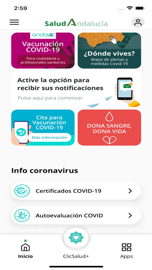 Salud Andalucía es una aplicación con información sobre la actualidad sanitaria y catálogo de apps sobre salud y trámites sanitarios que el Sistema Sanitario Público de Andalucía pone a disposición de los ciudadanos. La aplicación incluye una sección específica para que los ciudadanos evalúen su salud y reciban recomendaciones sobre el coronavirus COVID-19.