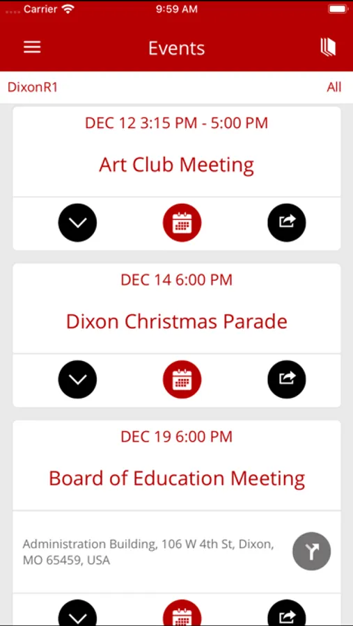 The official app for Dixon R-1 School District allows users direct access to the most recent news, announcements and event calendars. Customize the app to display information relevant to a specific campus and to receive important notifications from the district. Users may also access the directory of district faculty and staff, view dining menus, find the location of district events, contact campuses and departments, follow athletic scores and updates, and much more.
