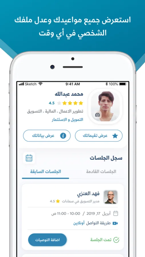 هذا التطبيق هو حلقة الوصل بين المستشار و المستفيدين من الخدمة من أصحاب الأفكار و رواد الأعمال