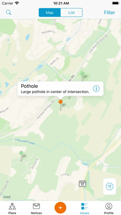 SEE CLICK REPORT is an easy way for anyone to report non-emergency issues to Carroll County, Maryland while on-the-go. Use this efficient tool to report concerns such as potholes, damaged street signs, graffiti, street maintenance, street light issues, damaged trees, park maintenance and more. Using your phone’s GPS, you can help identify the exact location of the problem, and with the use of its camera, you can attach a picture, as well. You’ll be able to track your issue from the time it is reported until it is resolved. SEE CLICK REPORT makes it easier than ever to report a problem.