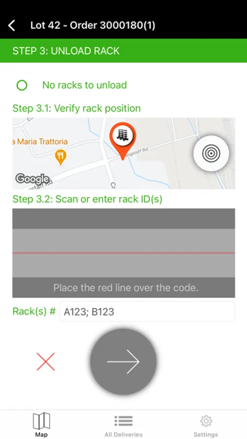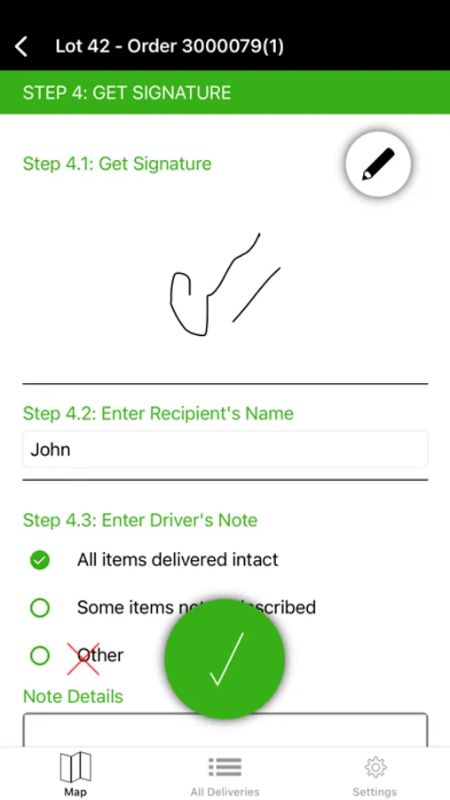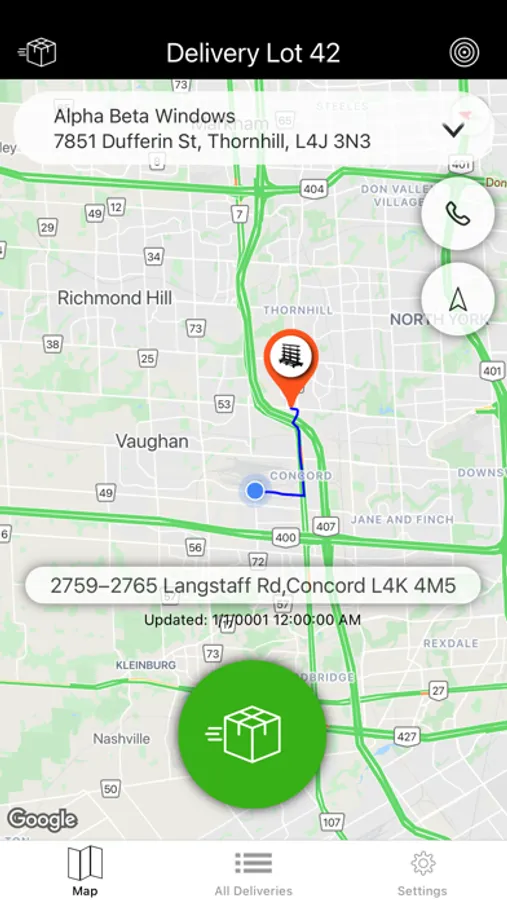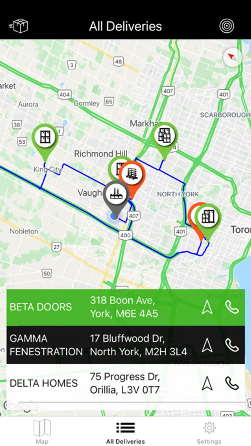 - Driver can view all the deliveries in the current shipping lot, and a mapped route detailing all the stops