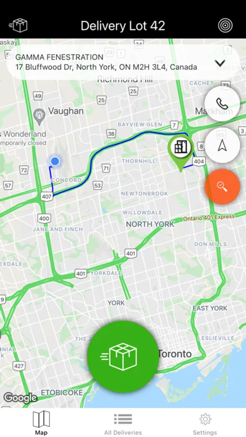 - Driver can use navigation and phone functions to contact the order recipient and use device Maps app to navigate to the delivery location