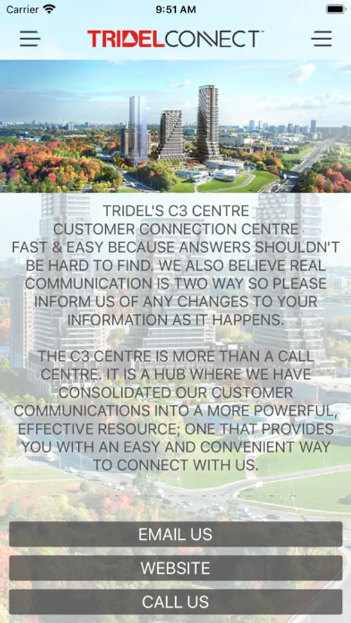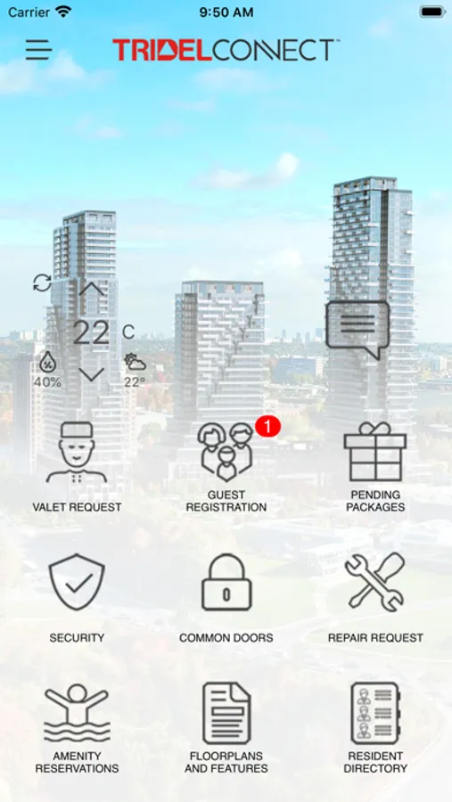 Tridel Connect is your private gate to your very own residence, wherever you might be. Access your Facilities Reservations, Concierge, Front Desk and Repair Requests, control Visitors Access, view and accept Deliveries, keep in touch thru our Internal Messaging System, all thru your iPhone or iPad, no matter where you are. Since Tridel Connect uses GPS Localization running on the background in order to improve the accuracy of some of its features, the continued use of GPS running in the background can dramatically decrease battery life.