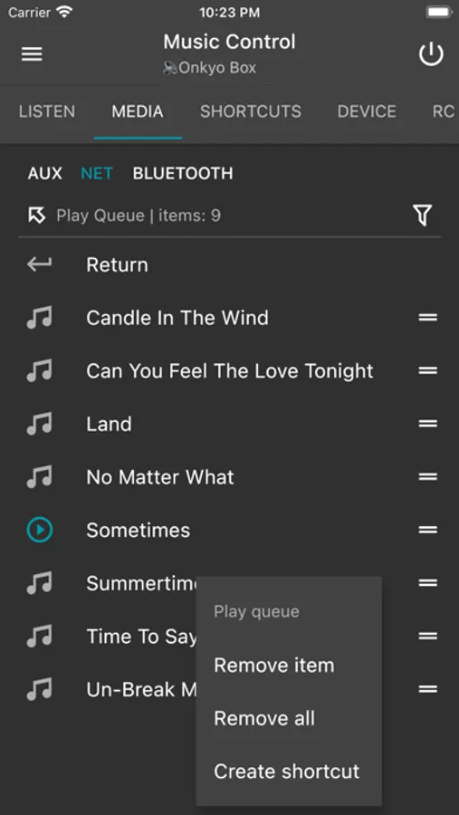 - Following models do not support "Play Queue" feature (that is a limitation of the Onkyo firmware): CR-N765, DTR-40.5, HM76, HT-R693, HT-R695, TX-8130, TX-8150, TX-NR626, TX-NR636, TX-NR646, TX-RZ900