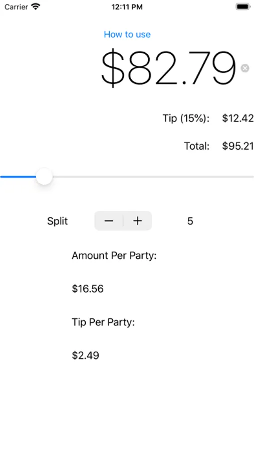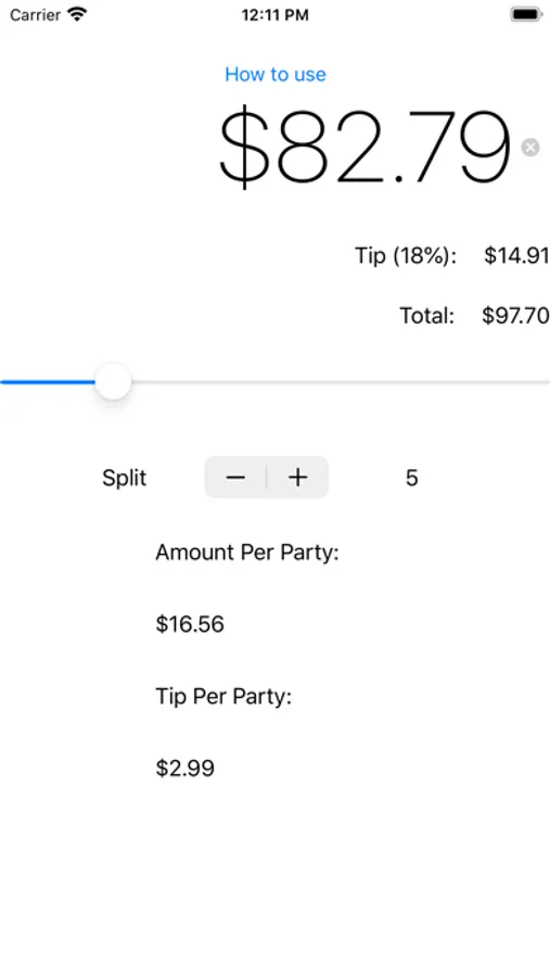 This FREE tip calculator allows you to quickly enter your bill subtotal, then the tip percentage you wish to leave can be adjusted via the slider, providing instant updated totals. Out to eat with a large group and need to split the bill? Not a problem with this tip calculator. Simply press the + button to desired split and the total and tip amounts adjust in real time!