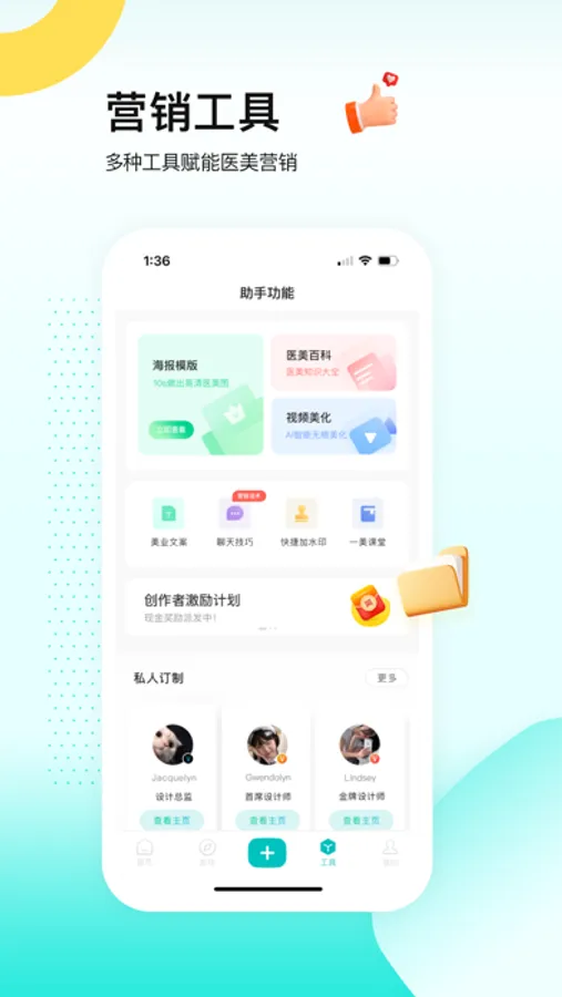 1、一美助手APP邀请国际知名医美、管理学、营销专家为您打造丰富、具有深度的各类课程,包含医美营销、行内专业、企业管理等多方位的学习内容,助您变得更加强大