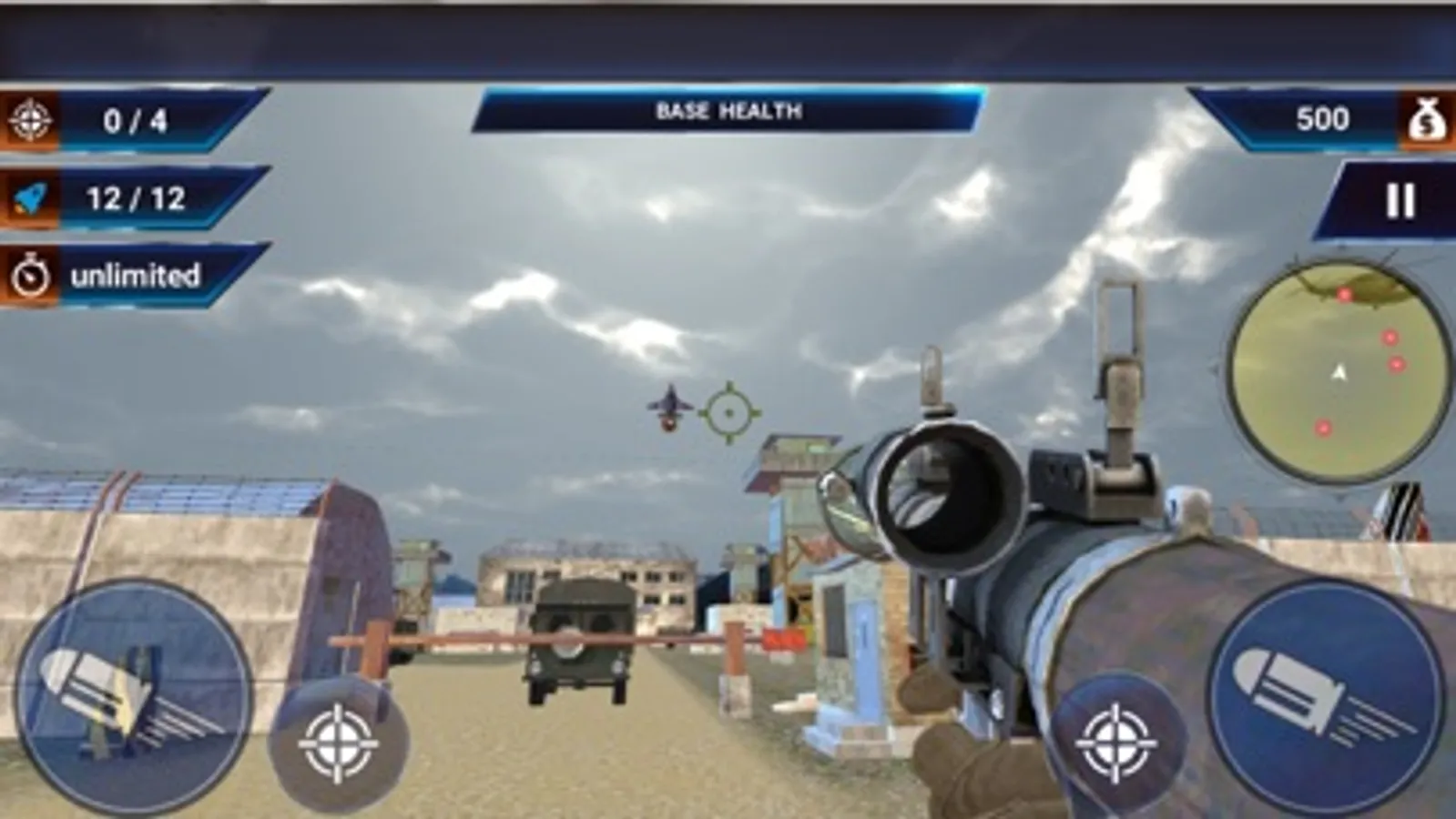 The modern enemy sky fighter jet war have crossed line of control and now striking on your country borderland and army bases, take control and charge attack on the enemy jet fighters. Your mission is to take charge of powerful anti-aircraft weapons and combat airstrikes and specially rocket launcher to destroy your enemies in intense sky battle. Fight against powerful warplanes that destroying your bases as you strategically have to protect your base from enemy air attacks. Survive wave after wave of sky assaulting forces of enemies. Shoot rockets using rocket launcher at flying aircraft to blast them in the air. Sky fighter jet war 2020 game provides a huge air force fleet attacking experience and provides an opportunity to take command on legendary anti aircrafts guns and many other heavy weapons and fight for domination on the sky by using your shooting skills. The shooting aircraft and destroying them has its unique realistic combination of firepower, speed, armor, and endurance. When enemy air force fighter jets try to attack your base then your quick action is to strike them back hardly. Hit accurately enemy planes by adjusting your aim towards jet to complete the mission & unlock the next level.