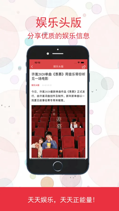 “娱乐头版”是一款基于娱乐用户需求而打造的互联网信息分享类产品,它为用户推荐有价值的、个性化的娱乐信息。