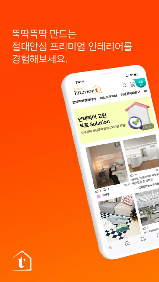 그래서, 실내인테리어 공사 면허를 보유한 200개 이상의 전문가들은 ‘인테리어T’에 모여 인테리어 기획과 디자인부터 시공과 사후관리까지 소비자의 절대안심을 책임지겠습니다.