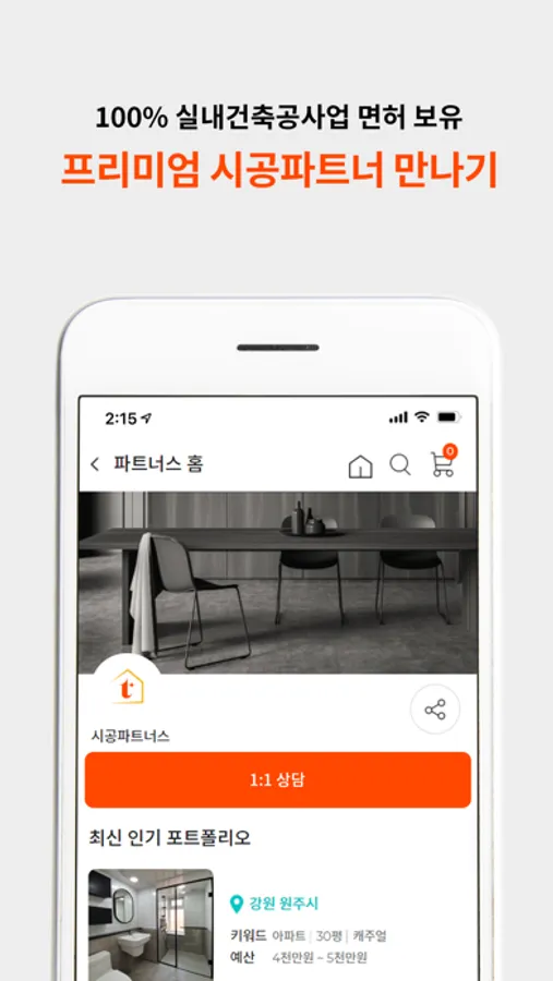 프리미엄 주거공간부터 오피스와 상업공간까지 비용과 공간의 목적에 맞춰 각분야 전문가에 의한 맞춤형 큐레이팅으로 완벽한 시공을 책임지겠습니다.
