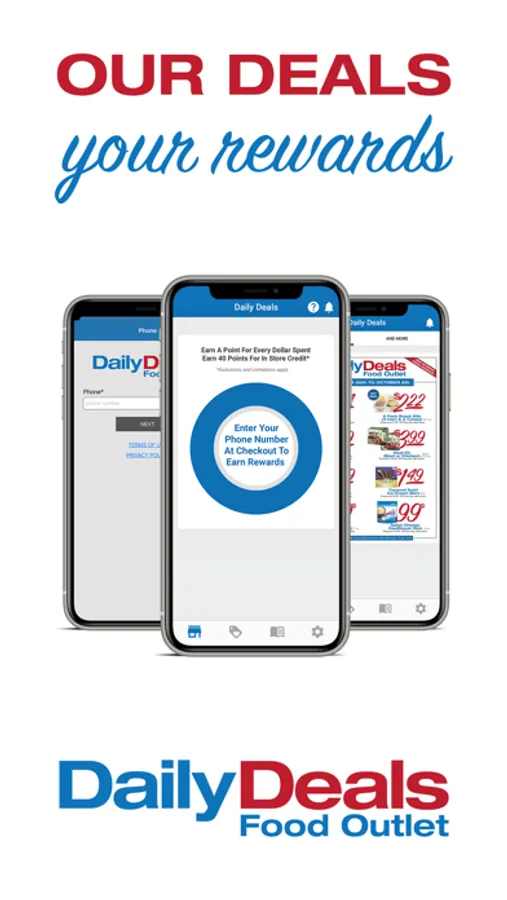 Now valued customers can earn points on every dollar spent—on every grocery purchase—at Daily Deals Food Outlet. Download the app to track your points, view featured deals & save!