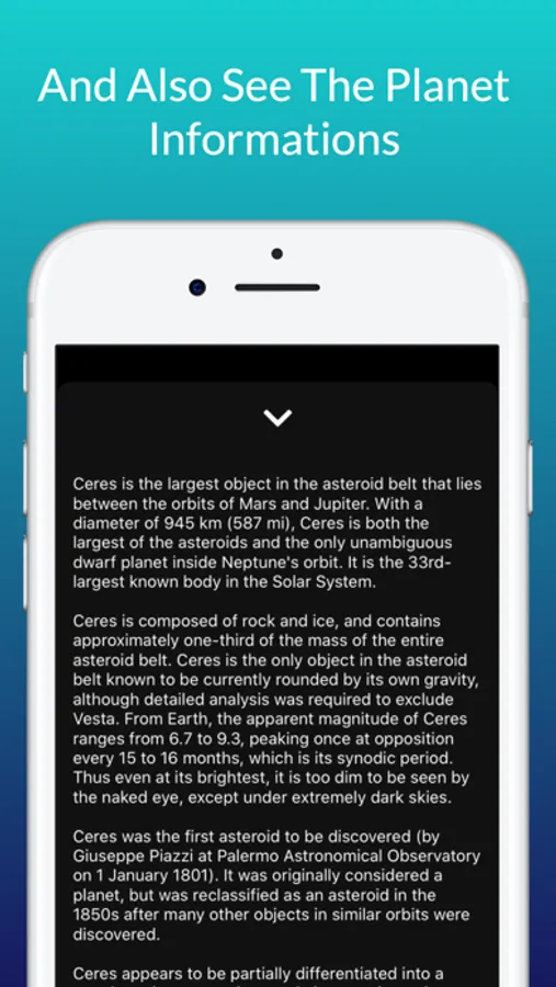 you can find any Planet that you want easily , you can see the informations of that planet and also you can see that planet in 3D mode and if your Device support ARKit you can also see that planet in ARKit mode