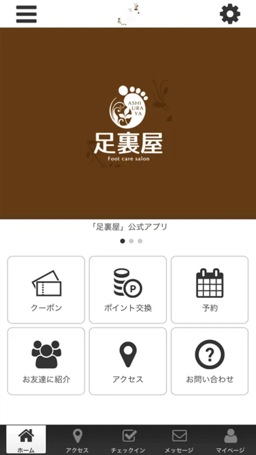 このアプリでは、足裏屋の最新情報の受け取りや便利な機能を使う事ができます。