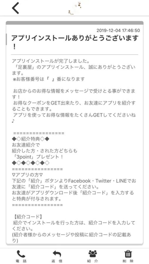 足裏屋のアプリをSNSを通じてお友達に紹介する事ができます。