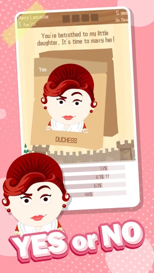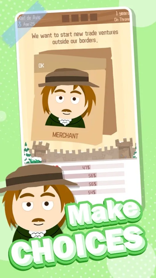Sit on the throne as a King/Queen, you can make choices by swiping your fingers left or right.
