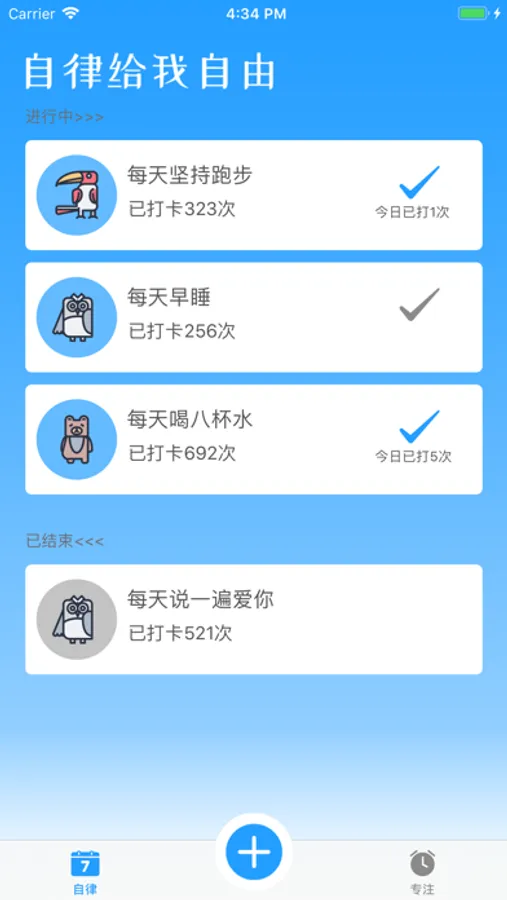 打卡吧是一个帮您养成习惯和培养专注的小工具,优质的生活来自于好习惯的养成,幸福的源泉来自于可以专注的做自己想做的事情;
