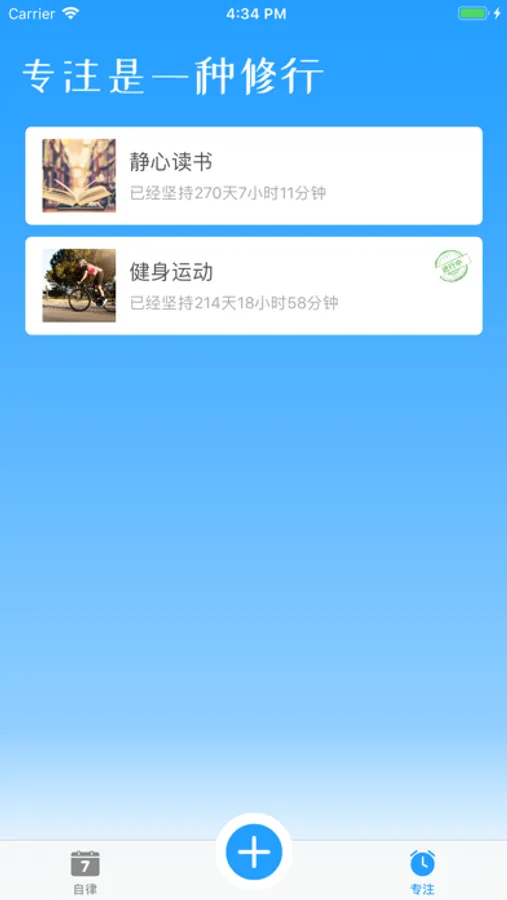 它会记录您坚持做一件事时每天的心语,同时也可以积攒您专注某个事情的认真时刻。