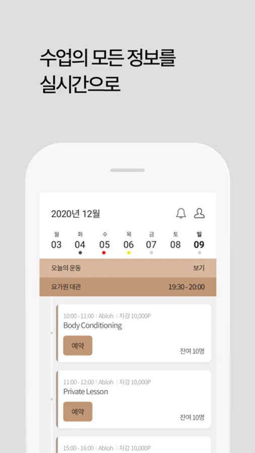 · 원하는 수업의 예약 현황을 간편하게 관리할 수 있습니다.