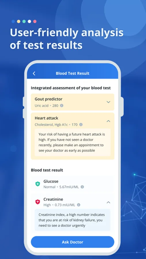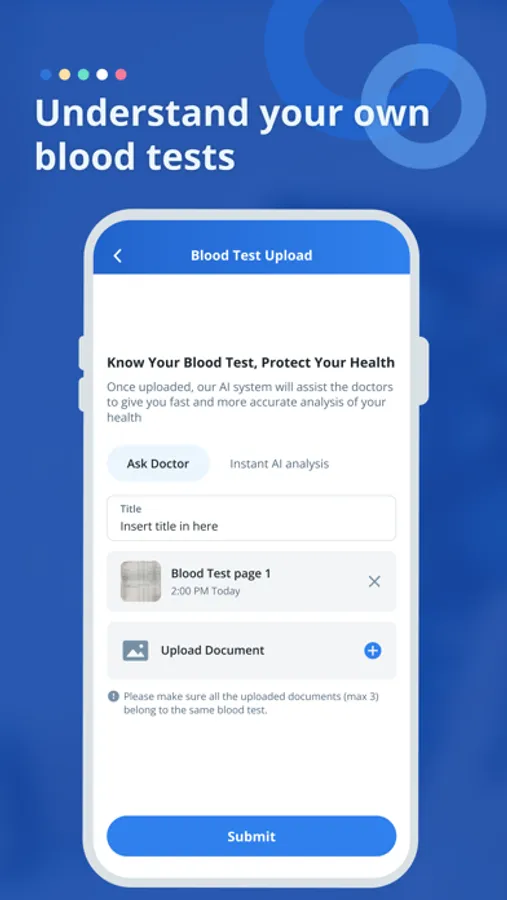 - Easily take pictures of your blood test or record with your phone or iPad and upload on our system